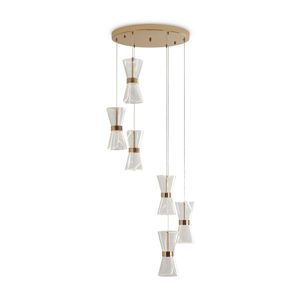 Арматура металл. Цвет золото. Плафоны из акрила. Форма песочные часы. Золотая окантовка как декоративный элемент. К светильникам прилагается пульт управления. LED источник света. Цветовая температура 2600-6000К.