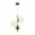 Арматура из металла в цвете матового золота. Плафоны-сферы из матового выдувного стекла. Модная асимметрия в дизайне. Источник света — лампы с цоколем Е14.