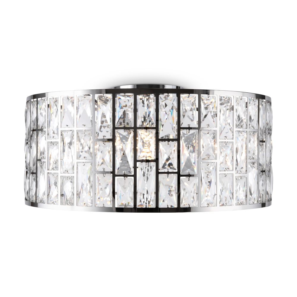 Металлическая арматура, цвет – хром. Каркас абажура – металл, декор – прозрач ный хрусталь. Потолочные модели с рассеивателем из матового стекла. Высота подвесных светильников регулируется.