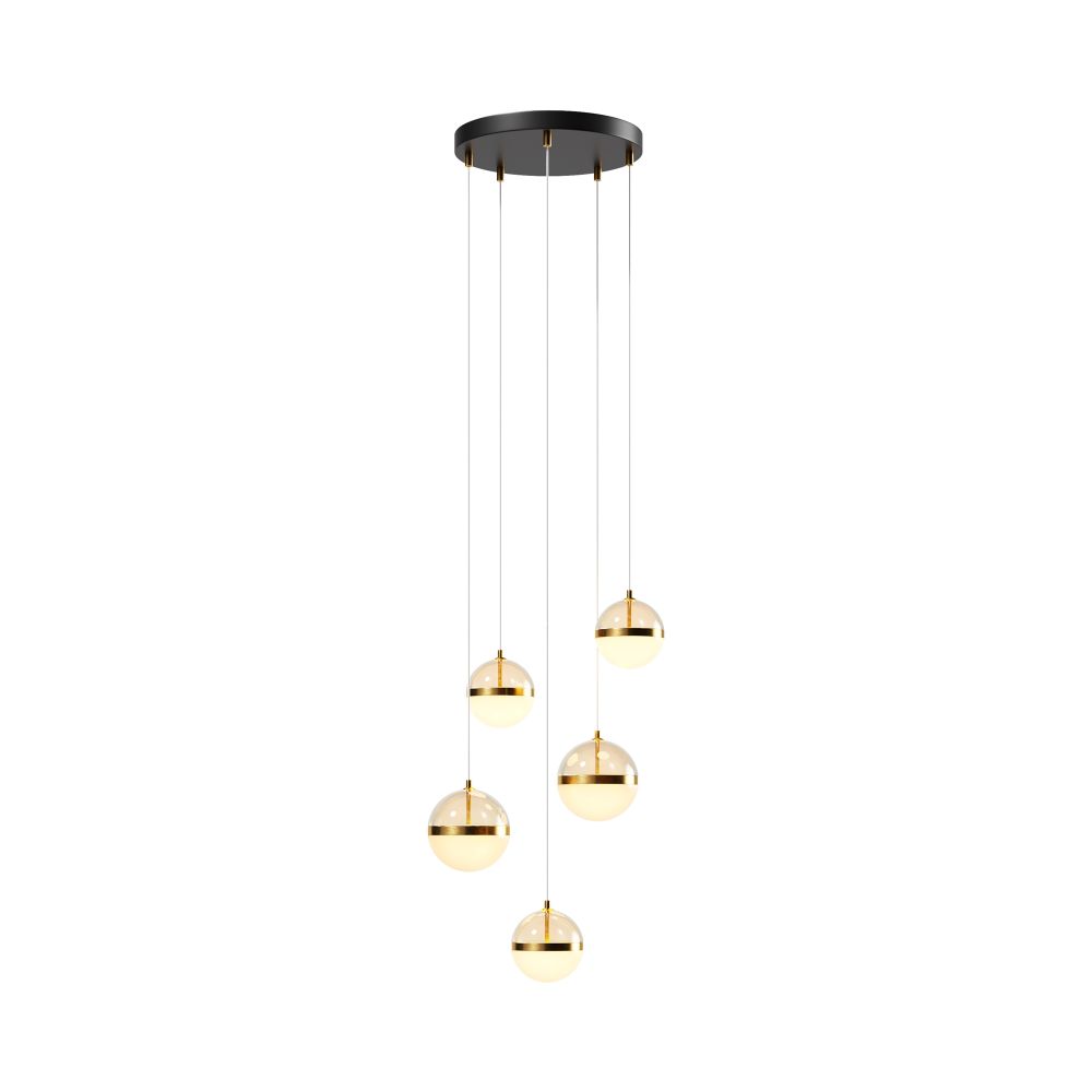 Черная потолочная чаша дополнена финишным антибликовым покрытием sandy, декоративный элемент плафона выполнен из металла цвета сатинированной латуни. Сочетание двух фактурных стекол в плафоне: нижняя полусфера из матового белого стекла для создания мягкого рассеянного света, верхняя часть плафона - из тонированного янтарного стекла. Внутри установлен LED-модуль, создающий равномерное освещение, направленное вверх и вниз. Цветовая температура – 3000К, угол рассеивания — 120°.