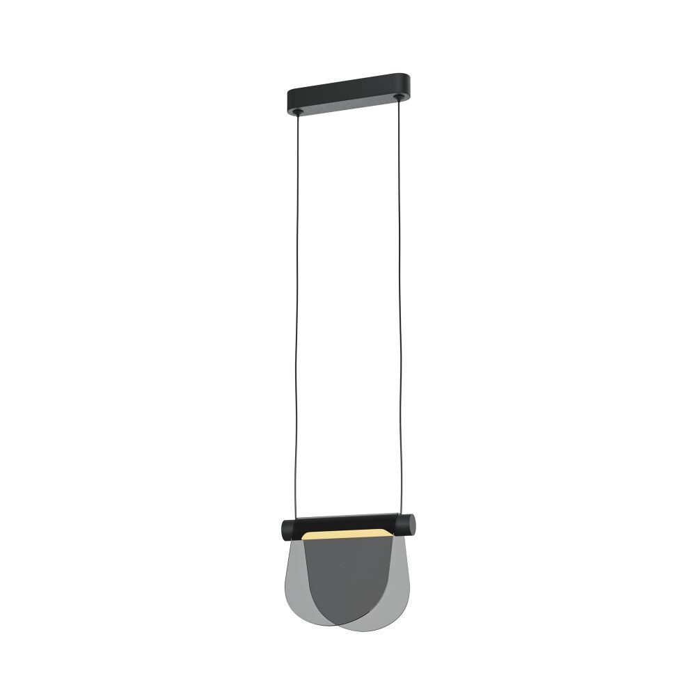 Металлическая арматура черного цвета с антибликовым эффектом sandy. Акцентные плафоны-пластины выполнены из высококачественного тонированного стекла. Благодаря специальной технологии придания цвета стеклу в момент его производства, достигается высокий уровень прозрачности и равномерного окрашивания по всей поверхности плафона. LED-источник света, с температурой цвета 3000К, угол рассеивания 120 градусов, высокий световой поток. Регулируемая длина провода 3 метра – подходит для установки в помещениях с высокими потолками.