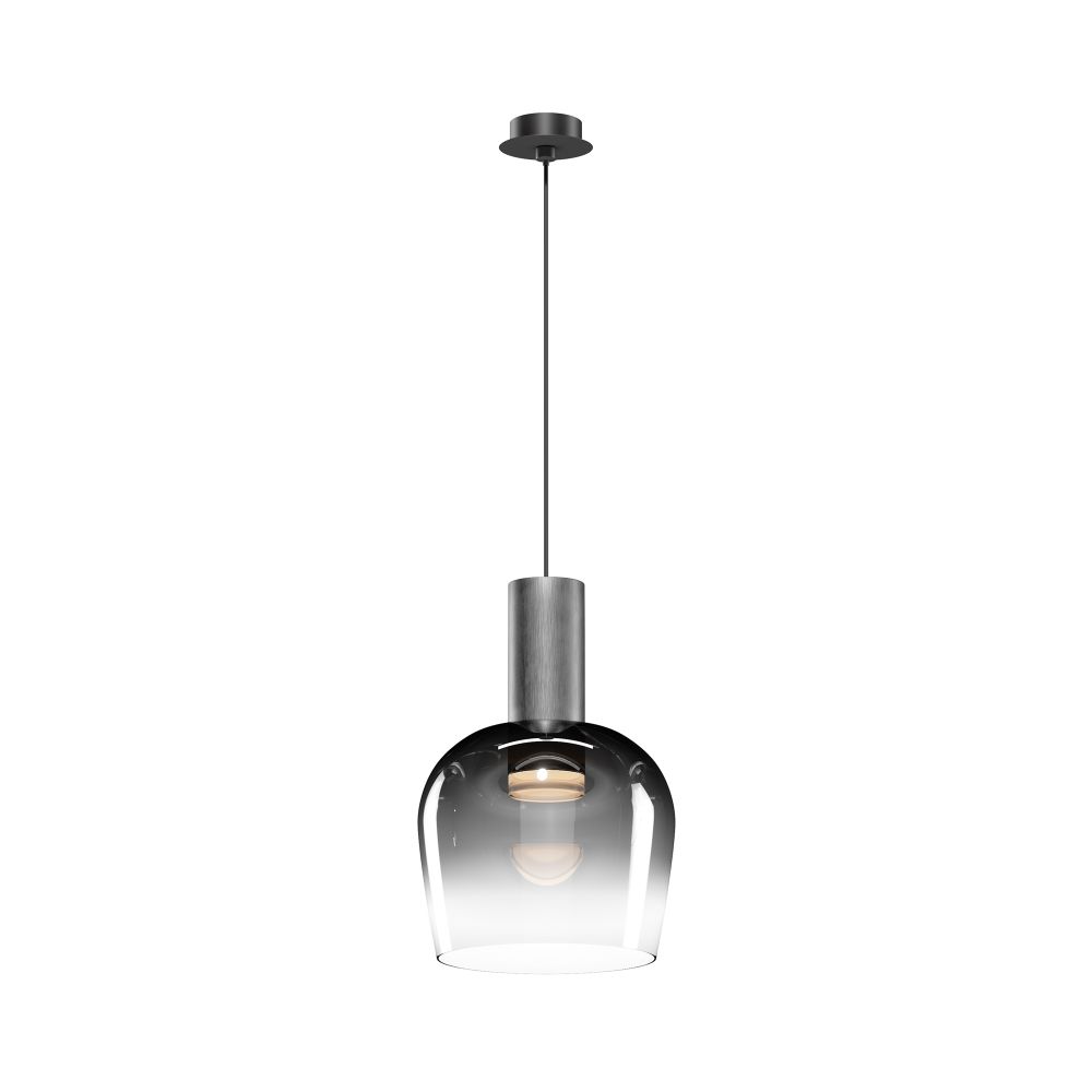 Цветовая гамма: дымчато-серый или насыщенно-янтарный цвет стекла в сочетании с черной или золотой арматурой. В серии есть модели светильников со сменным источником света с цоколем Е27 (каскадная композиция, потолочный и настольные светильники) и LED-источником (одинарные подвесные светильники). Температура свечения LED – 3000 К, угол рассеивания — 120 градусов. Плафоны каскадной композиции плафоны разных размеров и оттенков, установленные на одно основание. Оригинальный декор — актуальный вариант современной классики.