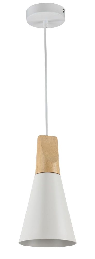Арматура и плафон из металла в двух оттенках: белый и серый. Декоративный элемент из бука. Дерево покрыто бесцветным лаком. Актуальная скандинавская эстетика. Регулируемая высота. Источник света - лапма с цоколем Е27.