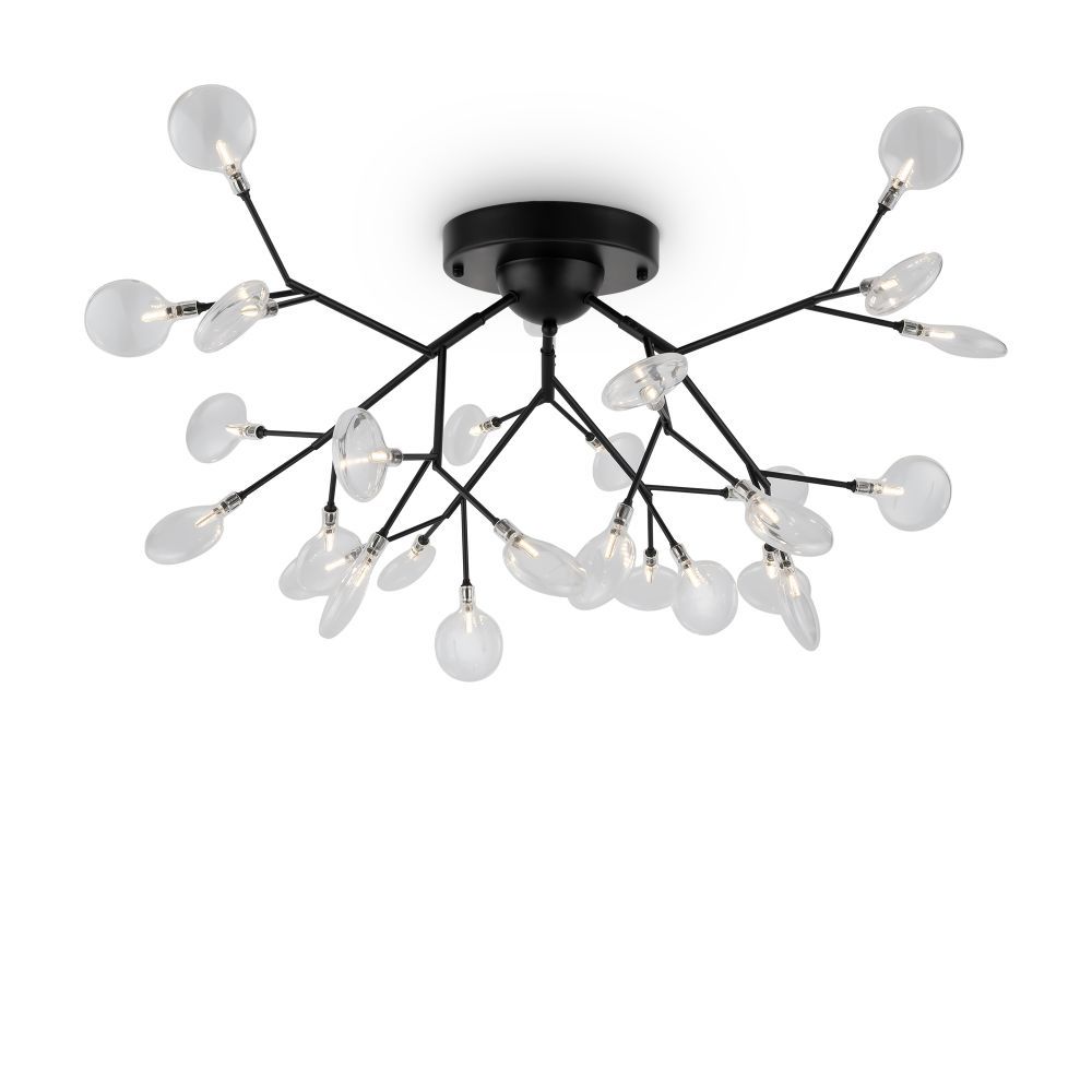 Материал арматуры – металл. Оттенки – черный, белый. Стеклянные плафоны оригинальной формы. Трендовый флористический дизайн. Источник света – лампа G4.