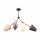 Арматура - металл, цвет — чёрный. Декоративные крепления и вставки цвета латуни. Тканевые абажуры в форме конуса из микса теплых цветов: бежевый и коричневый. Открытые верхние основания абажуров пропускают дополнительный свет. Динамичный дизайн в стиле Casual. Источник света — лампа с цоколем Е14.