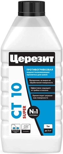 Описание Пропитка для Швов Облицовок Ceresit CT 10 Super 1л Водоотталкивающая, Противогрибковая, Силиконовая / Церезит СТ 10.Ceresit CT 10 Super. Противогрибковая водоотталкивающая пропитка для швов облицовок