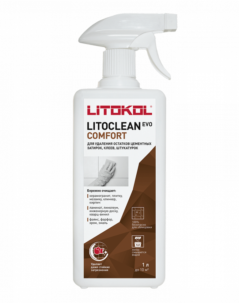Описание Средство для Удаления Остатков Цементных Растворов Litokol Litoclean Comfort EVO 0.5л для Внутренних и Наружных Работ.