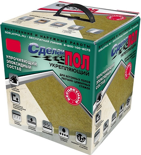 Описание Эпоксидный Состав Сделай Пол 20м2 Укрепляющий 2-х комп. для Укрепления и Обеспыливания Бетона и Консервации Деревянных Поверхностей, Бесцветный.Сделай Пол «Укрепляющий» - двухкомпонентный эпоксидный состав глубокого проникновения, предназначен для упрочнения и обеспыливания бетонных полов, а также для защиты и консервации деревянных поверхностей от влаги.