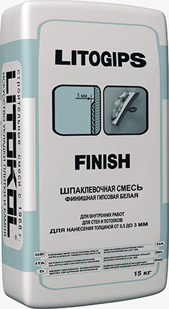 LITOGIPS FINISH предназначен для высококачественного финишного выравнивания стен и потолков внутри помещений, слоем от 0,5 до 3 мм за одно нанесение. После высыхания поверхность пригодна для высококачественного окрашивания и оклейки обоями. LITOGIPS FINISH применяется для выравнивания следующих видов оснований: