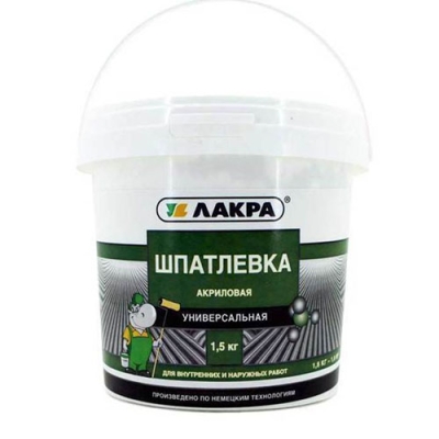 Описание Шпатлевка Акриловая Лакра 1.5кг Универсальная, Белая для Внутренних и Наружных Работ.