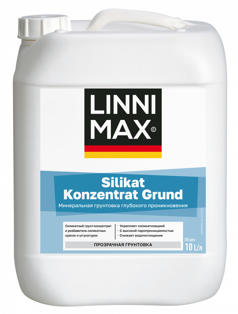 LINNIMAX Silikat Konzentrat Grund – концентрат силикатной грунтовки для наружных и внутренних работ.