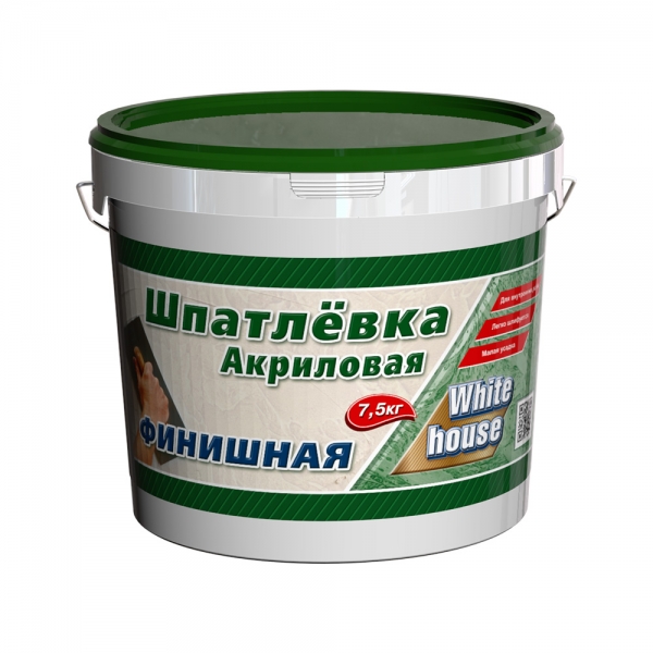 Описание Шпатлевка Финишная White House 7.5кг до 7мм Выравнивающая, Акриловая для Внутренних Работ, Белая.ПРЕИМУЩЕСТВА