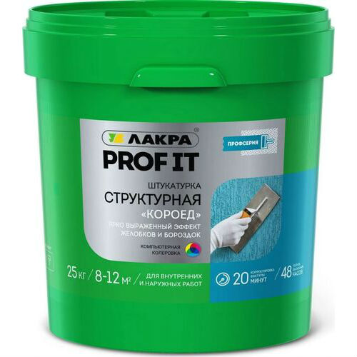 Описание Декоративная Штукатурка Короед Лакра Prof It 25кг Белая, Акриловая для Внутренних и Наружных Работ.