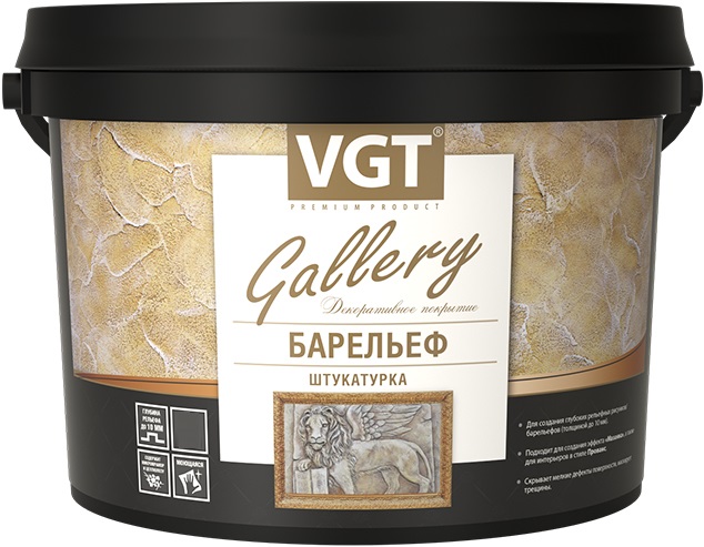 Описание Декоративная Штукатурка Барельеф VGT Gallery 14кг Фактурная с Волокнами Целлюлозы, Белая / ВГТ Барельеф.*Декоративное покрытие с целлюлозным наполнителем предназначено для создания множества различных фактур поверхности: от гладких до “рваных” или глубоких рельефных рисунков/барельефов (толщиной до 10 мм). Благодаря пластичной основе и наличию в составе натуральных волокон целлюлозы, материал легко наносится, скрывая мелкие дефекты поверхности, а также маскирует трещины при незначительной усадке дома. Используется для внутренней отделки офисов, гостиниц, кафе и жилых помещений по минеральным и деревянным поверхностям во всех типах зданий и сооружений (А-В), в т.ч. для которых предусмотрен режим влажной дезинфекции.