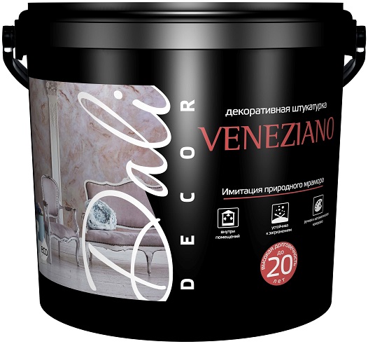 Описание Декоративная Штукатурка Венецианская Dali Decor Veneziano 7кг Эффект Мрамора / Дали Декор Венециано.Назначение: