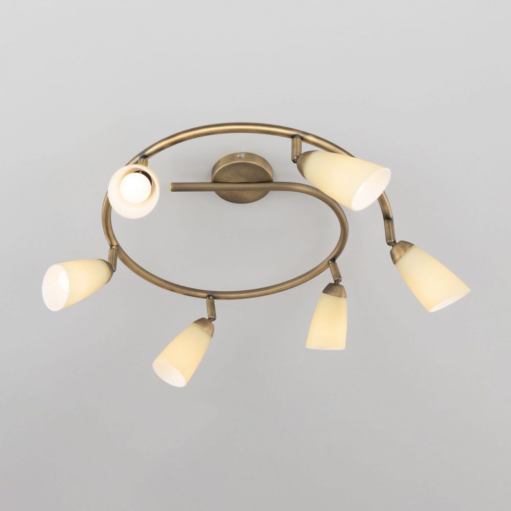 Потолочный светильник Citilux Белла CL501163 в современном стиле. Основание металлическое, в виде спирали, цвет бронза. Плафоны стеклянные, песочного цвета, на поворотных стойках, можно направить в разные стороны. В изделии используются 6 ламп с цоколем Е14, максимальной мощностью для ламп накаливания 60Вт (в комплект не входят, приобретаются отдельно). Светильник подходит для всех типов потолков, в том числе натяжных, тип крепления – планка. Спот спираль Citilux Белла CL501163 прекрасный выбор для освещения небольшой гостиной, уютной спальни, строгого кабинета и комфортной кухни. ХАРАКТЕРИСТИКИ Вес и габариты упаковки Длина (мм) 540 Высота (мм) 300 Ширина (мм) 550 Вес (грамм) 2544 Прочие Тип cветильника Спот поворотный Коллекция Белла Мощность общая, Вт 360 Размещение Потолочное/Настенное Освещаемая площадь - кв.м 17 Высота, мм 300 Диаметр, мм 650 Тип крепления Планка Стиль Современный / Классика Для любого потолка, в т.ч.натяжного Да Форма светильника Изогнутые / Плафоны Место применения Гостиная / Спальня / Кухня / Кабинет / Дача / Прихожая / Коридор ШтрихКод 5790080080386 Форма светильника Плафоны / Изогнутые Степень защиты IP IP20 Срок гарантии, месяцев 12 Вариант крепления Потолочное/Настенное Поворотные Да Лампы - Мощность макс, Вт 60 Лампы - Количество 6 Арматура - Материал Металл Арматура - Цвет Бронза и вариации Арматура - Поверхность Матовая Материал плафонов Стекло Цвет плафонов Шампань Поверхность плафонов Матовая Форма плафонов Круглый Направление ламп Поворотный Виды ламп Накаливания / Светодиодные / Галогеновые / Компактные люмин. Цоколь Е14 Отзывы о Спот Поворотный Citilux Белла CL501163 Бронза / Ситилюкс.Отзывов пока не было. Вы можете оставить его первым