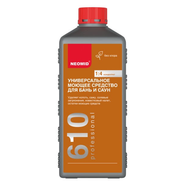 Описание Средство Моющее для Бань и Саун Neomid 610 Универсальное, Бесцветное / Неомид 610.Для очистки различных поверхностей бань, саун, душевых кабин, и других помещений с повышенной влажностью. Эффективно для деревянных, стеклянных, пластиковых поверхностей и кафеля.