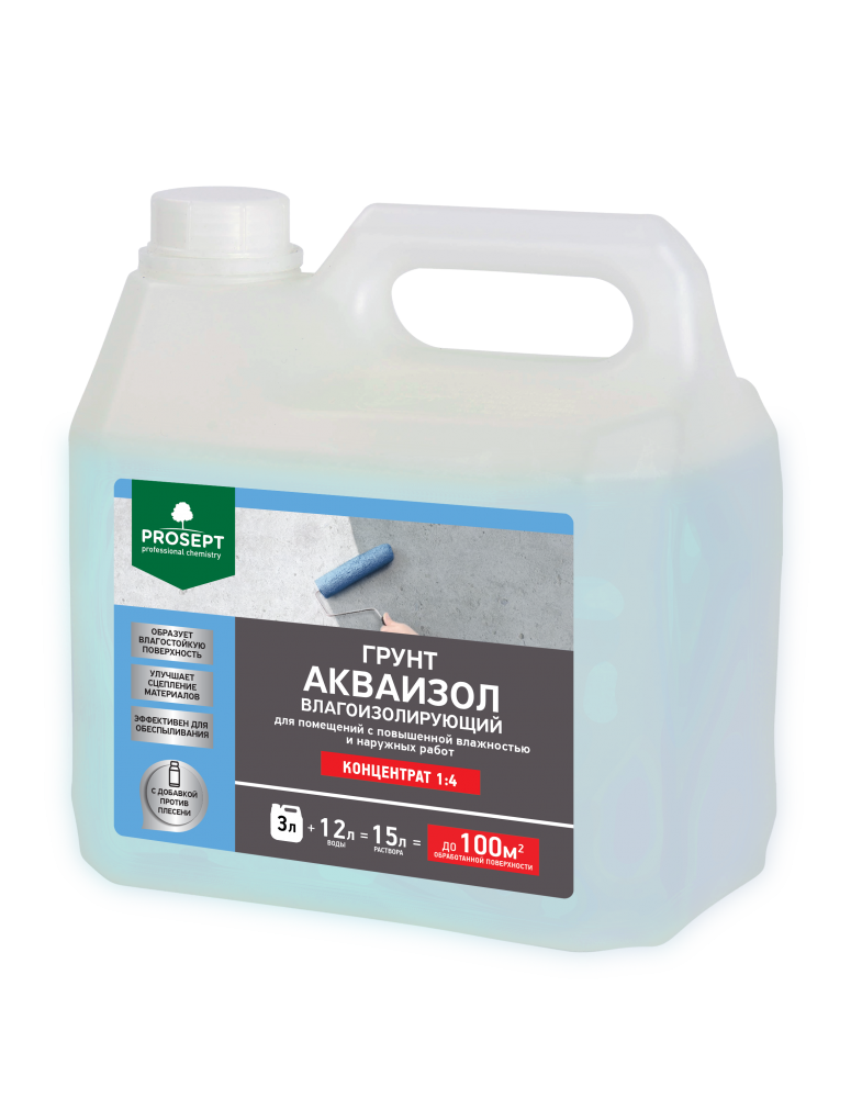 Описание Грунт Влагоизолирующий Prosept Акваизол 3л 047-3 / Просепт.