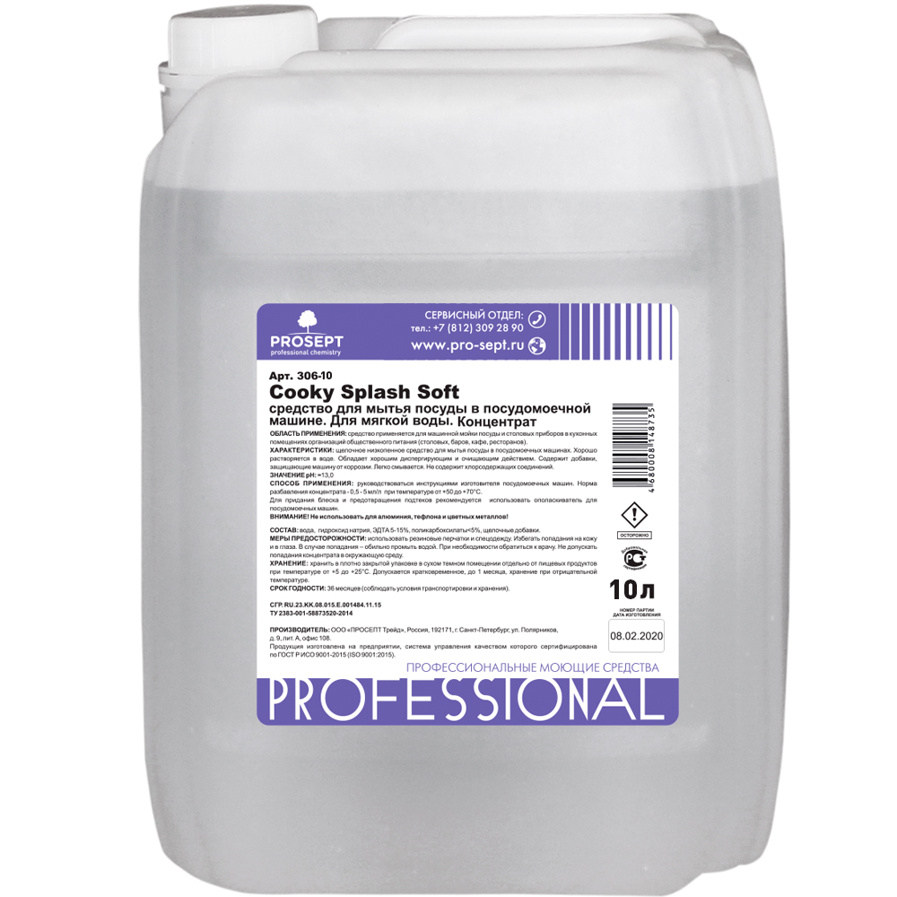 Описание Средство для Мытья Посуды в Посудомоечной Машине Prosept Cooky Splash Soft 10л 306-10 / Просепт.