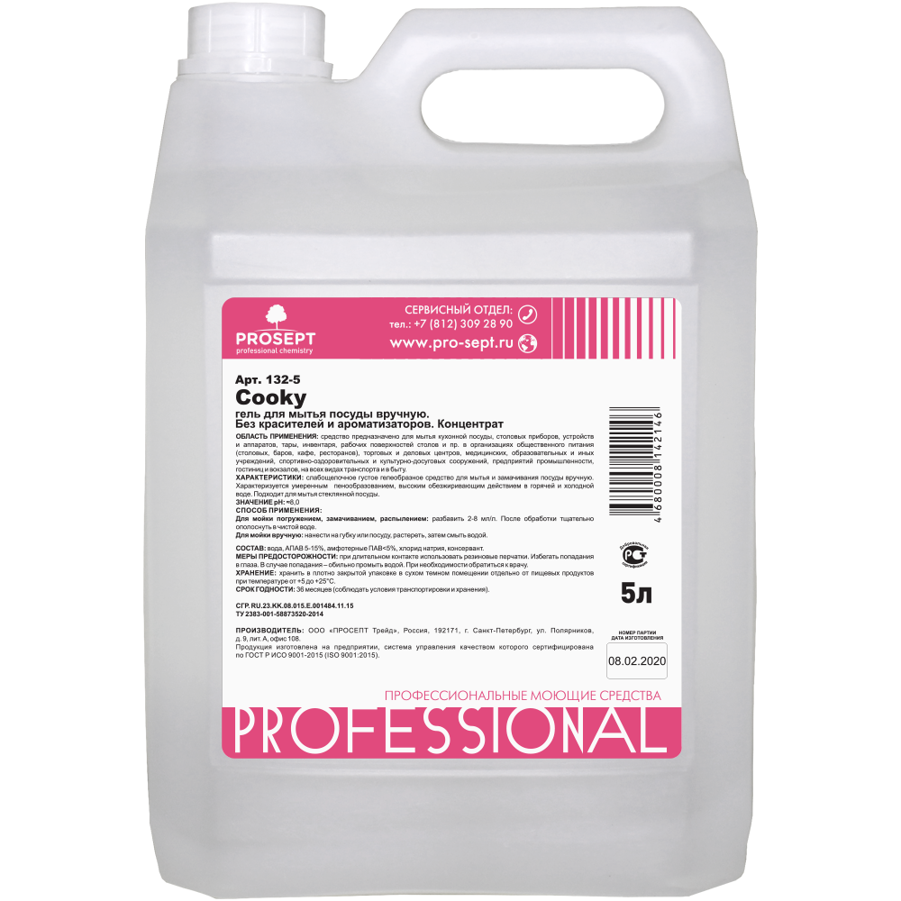 Описание Гель для Мытья Посуды Вручную без Цвета и Запаха Prosept Cooky 5л 132-5 / Просепт.