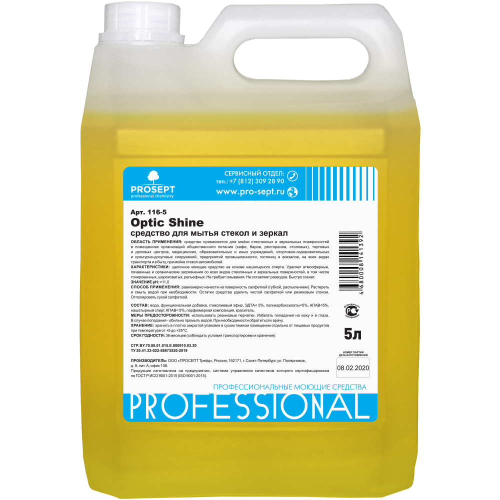 Описание Cредство для Мытья Стекол Prosept Optic Shine 5л 116-5 / Просепт.