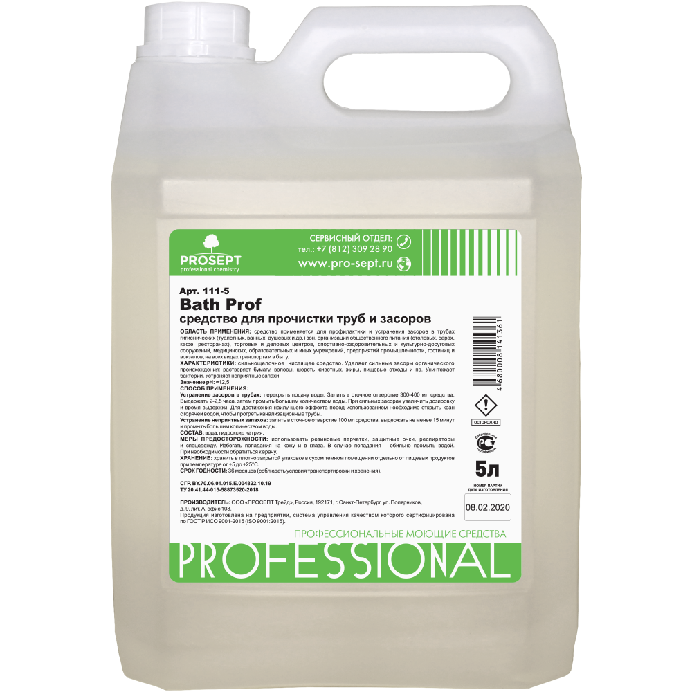 Описание Средство Чистящее Prosept Bath Prof 5л 111-5 / Просепт.