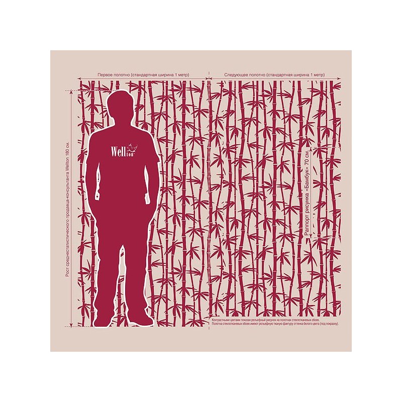 Описание Стеклообои Дизайнерские Wellton Decor Бамбук WD800 1*12,5м 1 Сорт / Веллтон Декор.