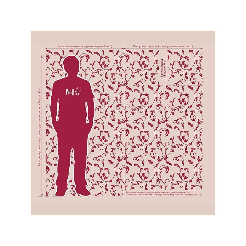 Описание Стеклообои Дизайнерские Wellton Decor Барокко WD781 1*12,5м 1 Сорт / Веллтон Декор.