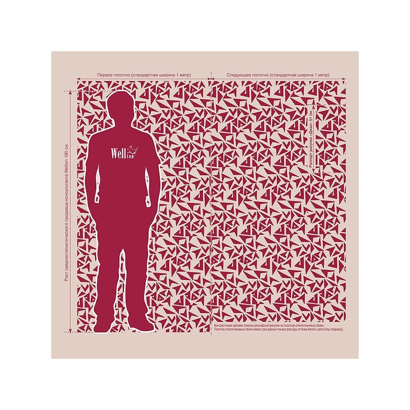 на 12.5 кв.м. Коллекция Wellton Decor Единица измерения рулон Срок хранения не ограничен Производство (страна) Китай Число перекрашиваний до 30 раз Срок службы более 30 лет Раппорт 51 см. Размер (ширина рулона) 1 м. Размер (длина рулона) 12.5 м. Революционная коллекция дизайнерских стеклотканевых обоев Wellton Decor — это современное и стильное решение для любого интерьера. Сохраняя все уникальные свойства стеклообоев, дизайнерские стеклотканевые обои Wellton Decor предлагают невероятное разнообразие тканых фактур, способных украсить любой интерьер: от коридора и кухни и до спальни, гостиной и детской комнаты.