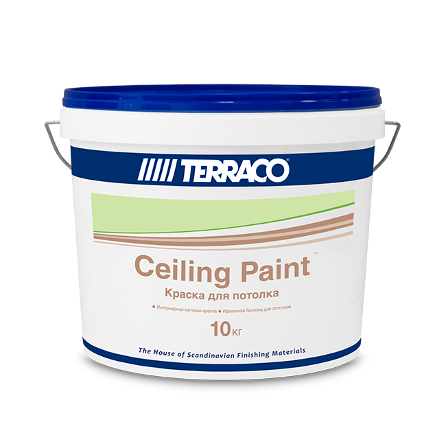 Описание Terraco Ceiling Paint Акриловая Краска для Потолков 10кг.Cэйлинг Пэйнт – бюджетная матовая краска на акриловом связующем с повышенной степенью белизны для окраски потолочных поверхностей внутри помещений.