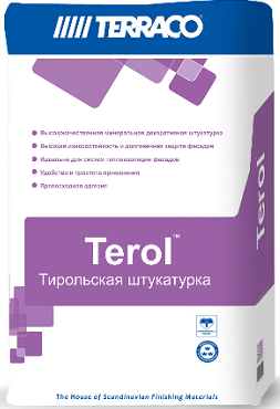 Описание Декоративная Штукатурка Шуба Terraco Terol Granule 25кг Белая, Минеральная, Размер Зерно 2.5мм / Террако Терол Гранул.Терол Гранул - это минеральная декоративная штукатурка на цементной основе с выраженной зернистой текстурой типа «шуба». Материал разрабатывался в качестве финишного покрытия для долговременной защиты фасадов, свыше 15 лет, но нашел широкое применение также и во внутренней отделке помещений. Производится в сером цвете, на основе серого цемента, и в белом цвете, на основе белого цемента.
