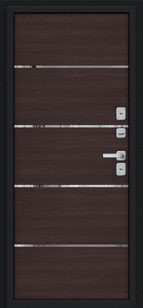 Описание Входная Дверь Bravo Лайн/BChrome Букле Черное/Wenge Melinga 960x2050мм Правое Открывание / Браво.
