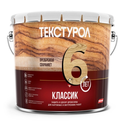 Описание Защита и Декор Древесины Текстурол Классик 10л Махагон, Алкидная, Полуглянцевая для Внутренних и Наружных Работ до 6 Лет.