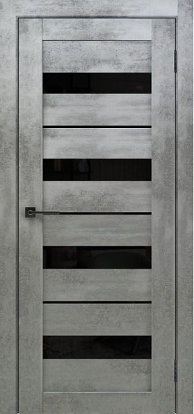 Описание Межкомнатная Дверь Verda Х-5 Бетон Светлый со Стеклом Лакобель Чёрный 2000х700мм (Полотно+Коробка+5 Наличников) / Верда.