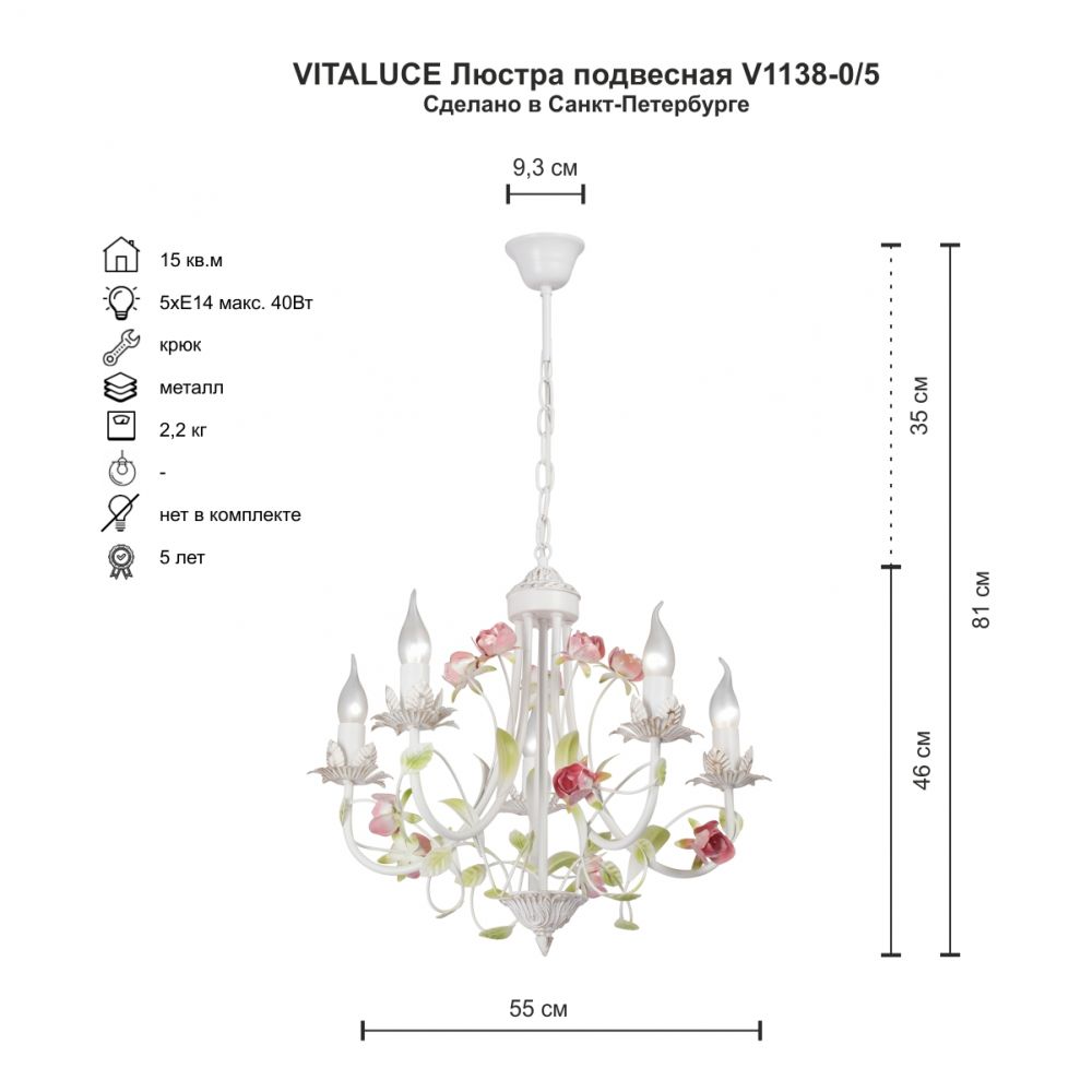 Описание Люстра Vitaluce V1138-0/5, 5xE14 Макс. 40Вт Белый, Матовый, с Золотом / Виталюче.